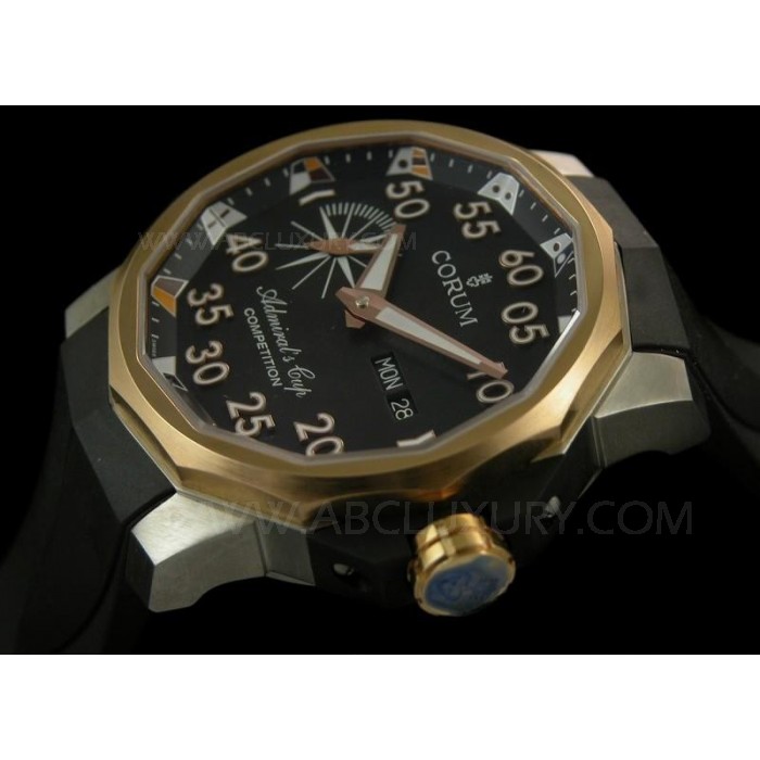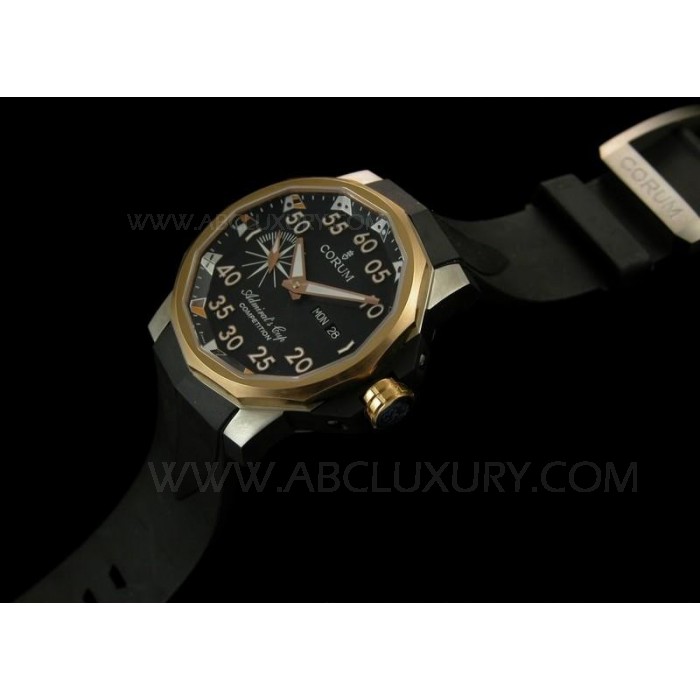 Replica Corum Admirals Cup ajanoton miesten kellot ovat tehty laadukas sveitsiläistä Automaattinen mekaaninen liike. On tarjoaa täysin ajanottotoimintojen. Titaani tapauksessa musta kellotaulu, 18k nousi kullattu kehys, ja laadukas mustaa kumia hihna ovat täsmälleen samat yksityiskohdat ja materiaalit alkuperäisenä. ||| Sukupuoli: Miesten kellot